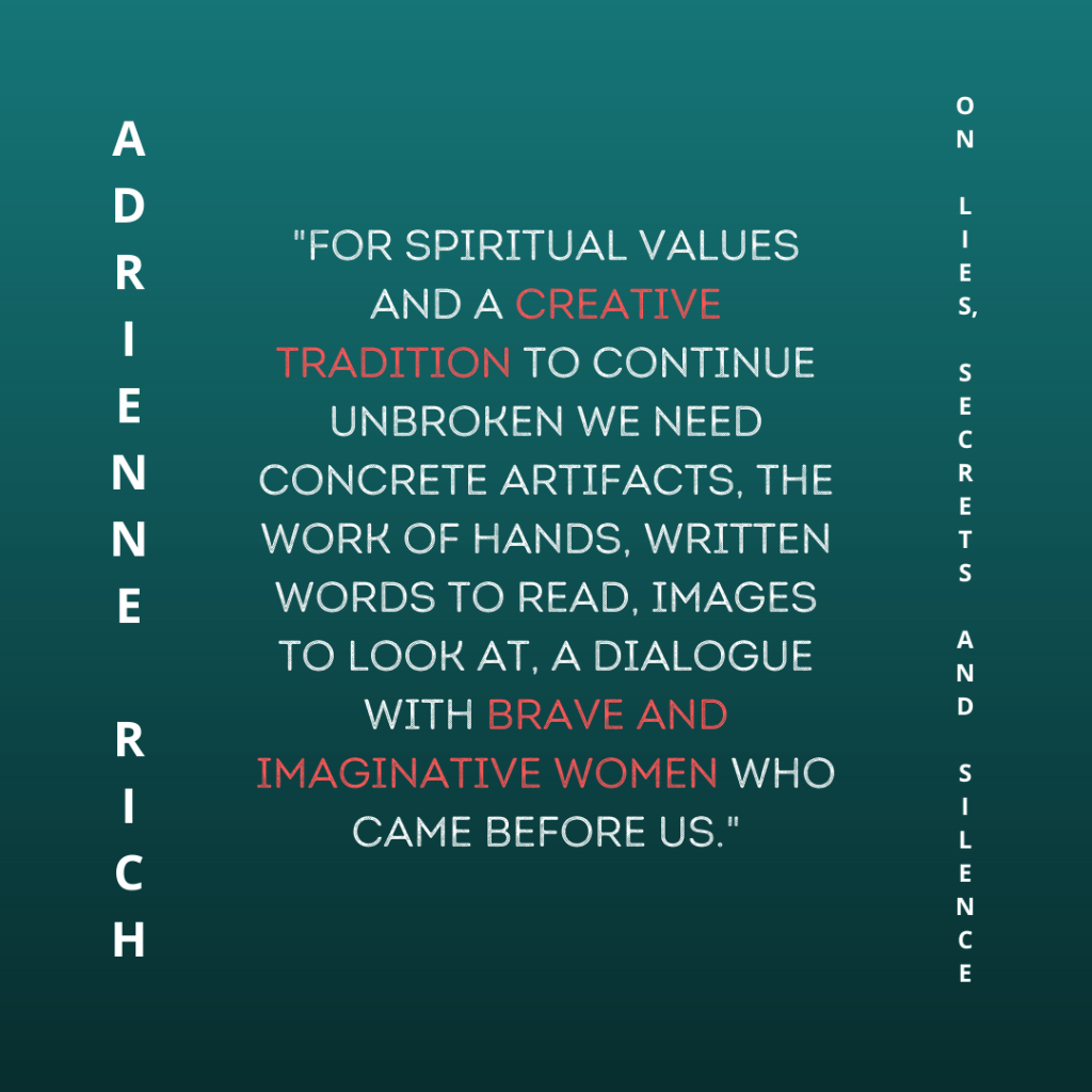 Adrienne Rich on Brave and Imaginative Women October 20, 2021 ~ maedez Share this: Click to share on X (Opens in new window) X Click to share on Facebook (Opens in new window) Facebook Like Loading... Related Published by maedez Writer, biographer, poet. History nerd, silent movie maven. Punk rocker, amateur baker, bookworm. Cricket fan, Scotch drinker, craft beer snob. View all posts by maedez