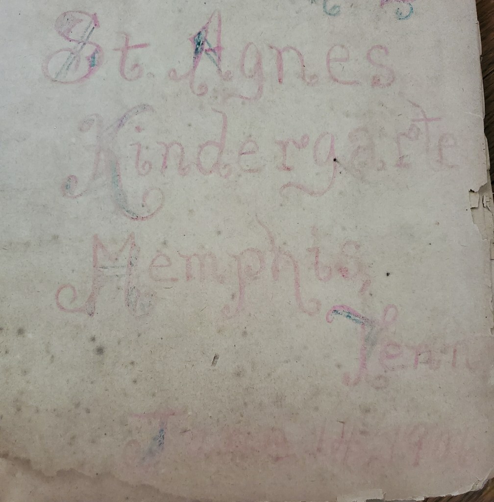 I finally got around to cataloging J’s kindergarten scrapbook yesterday! She started it in 1906! I put off doing this project for so long because the paper is quite delicate in places. These are the oldest things in my collection.